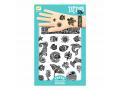 Concernant la matière, ces tatouages sont en papier FSC MIX, certifié pour sa gestion responsable des forêts. Pour l'entretien, rien de plus simple, ils se retirent facilement avec de l'eau et du savon. Ils respectent les normes de sécurité européennes et sont sans danger pour la peau des enfants, ce qui les rend idéals pour les plus petits qui souhaitent s'amuser à se tatouer sans risque.