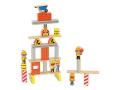 - Contenu : comprend plusieurs pièces en bois illustrées (engins, ouvriers, plots, poutres, etc.) à empiler