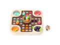- Jeu de société revisité autour du thème de la ferme, avec des figurines lapins et carottes en bois.